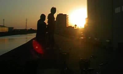 近くの川で水切りして、夕日をバックに帰宅。